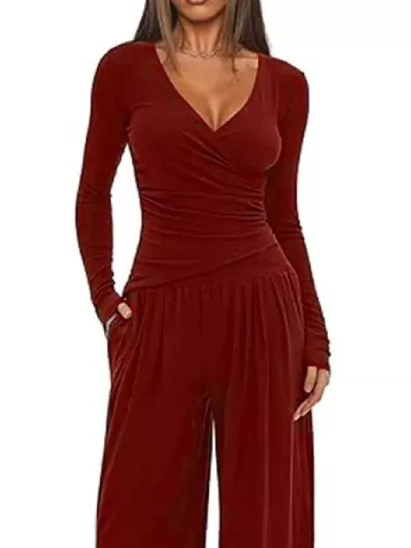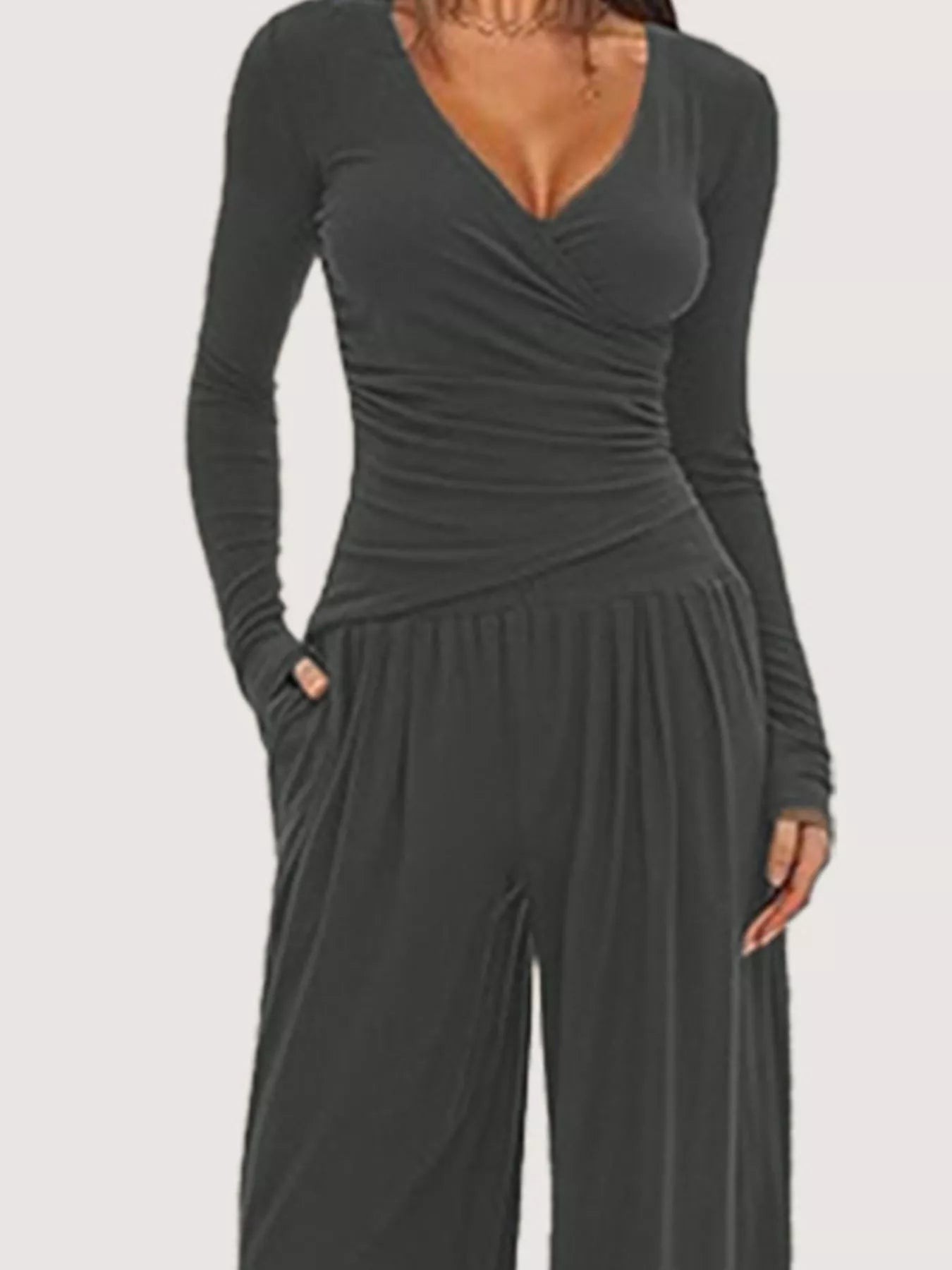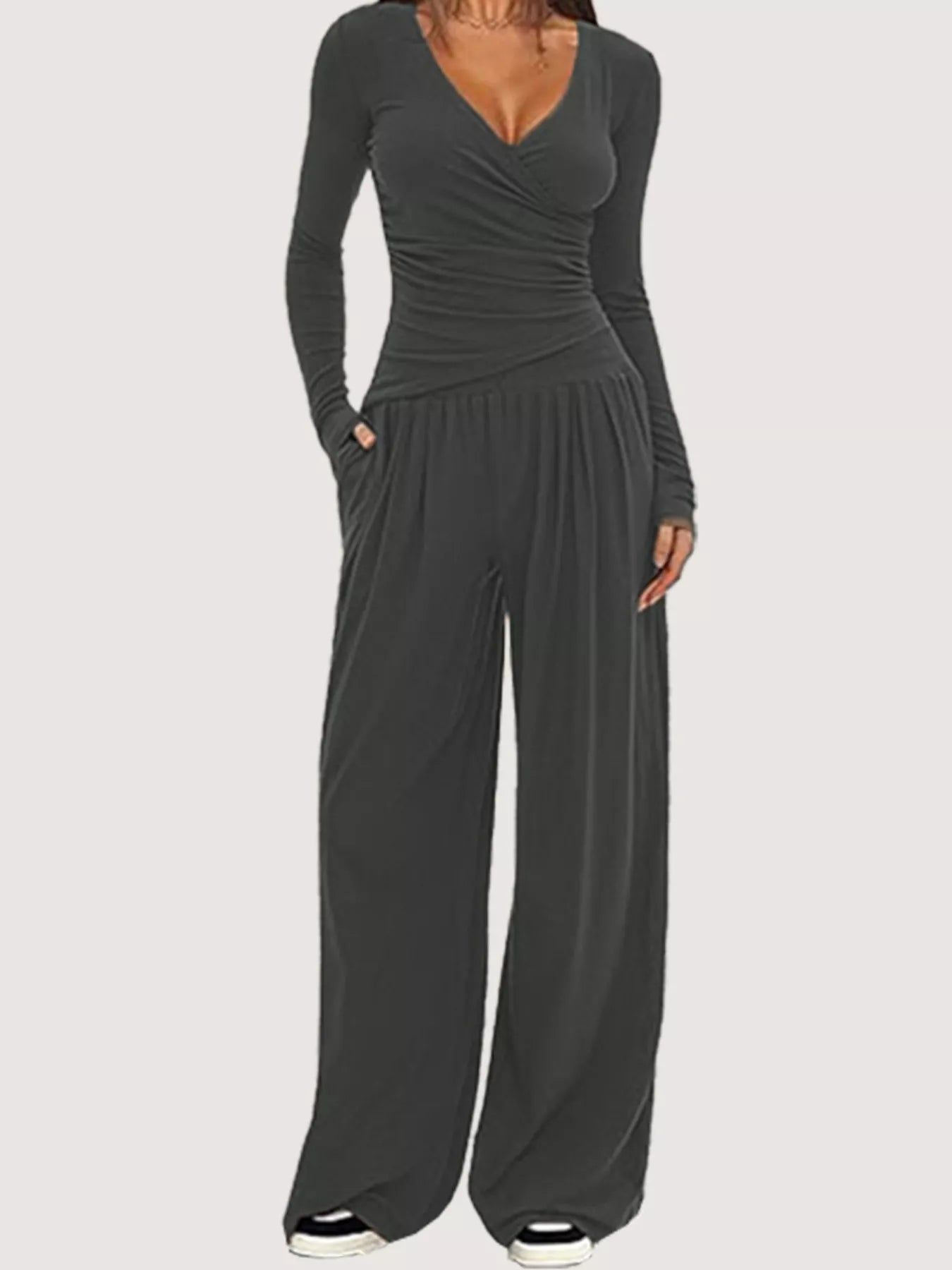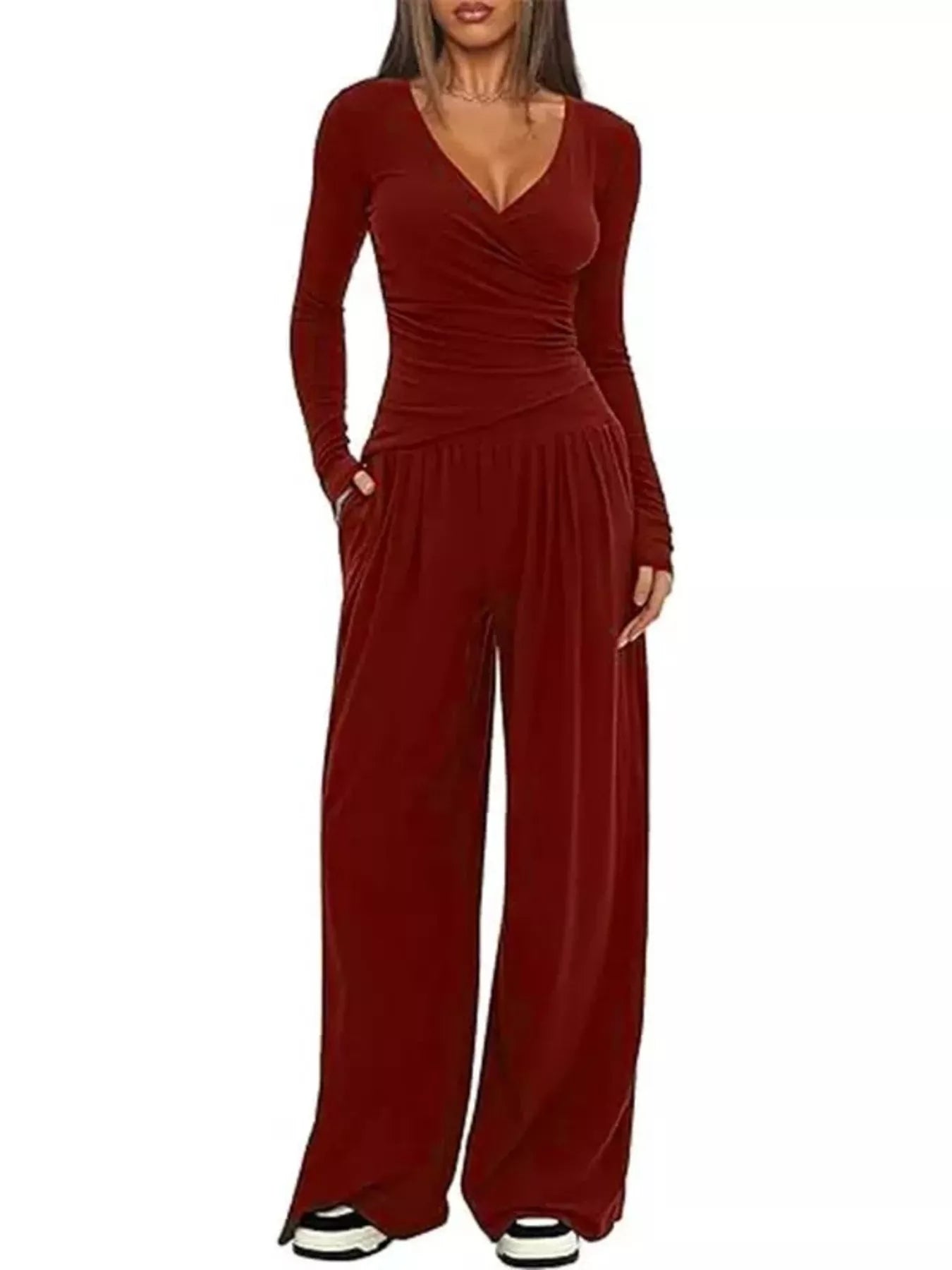 Casual Long Sleeve Top and Wide Leg Pants Set
