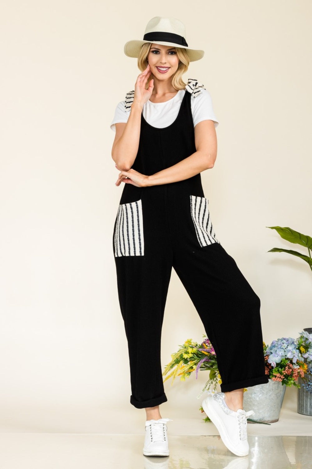 The Stripe Contrast Pocket Rib Jumpsuit is a trendy and versatile piece that combines style and comfort effortlessly. Featuring striped detail pockets, this jumpsuit offers a unique and eye-catching design. Made from ribbed fabric, it provides a stretchy and flattering fit that moves with your body. The jumpsuit style is both chic and practical, making it a go-to option for various occasions. Whether you dress it up with heels or keep it casual with sneakers, this jumpsuit is a fashion-forward choice. Elevate your outfit with the modern and chic look of the Stripe Contrast Pocket Rib Jumpsuit for a stylish statement.