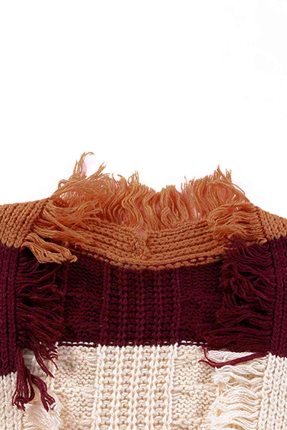 Color Block Frayed Hem Open Front Cardigan
