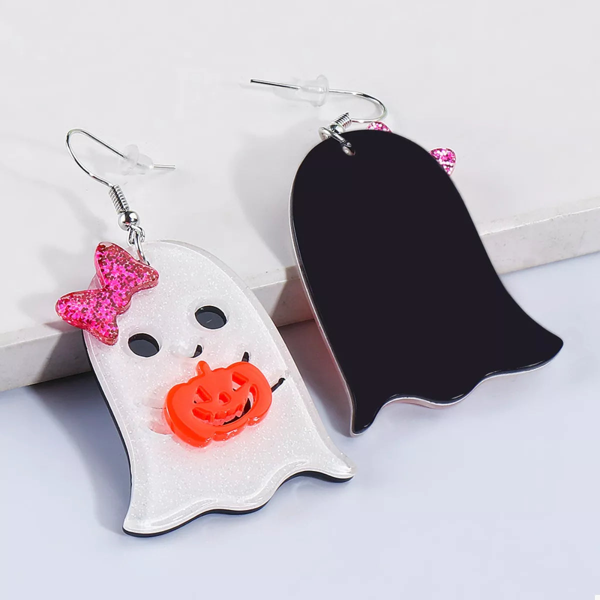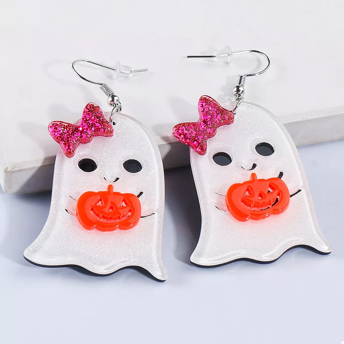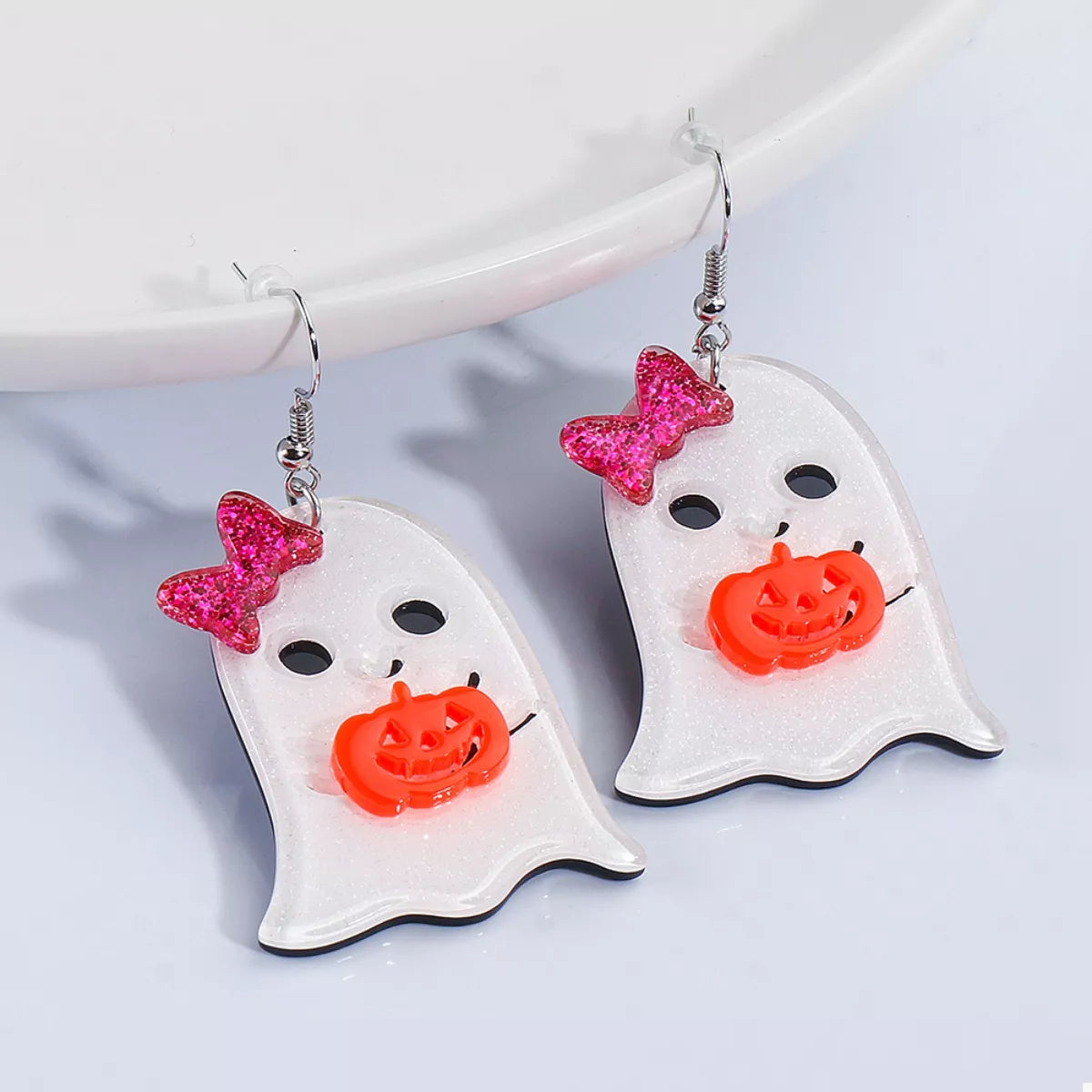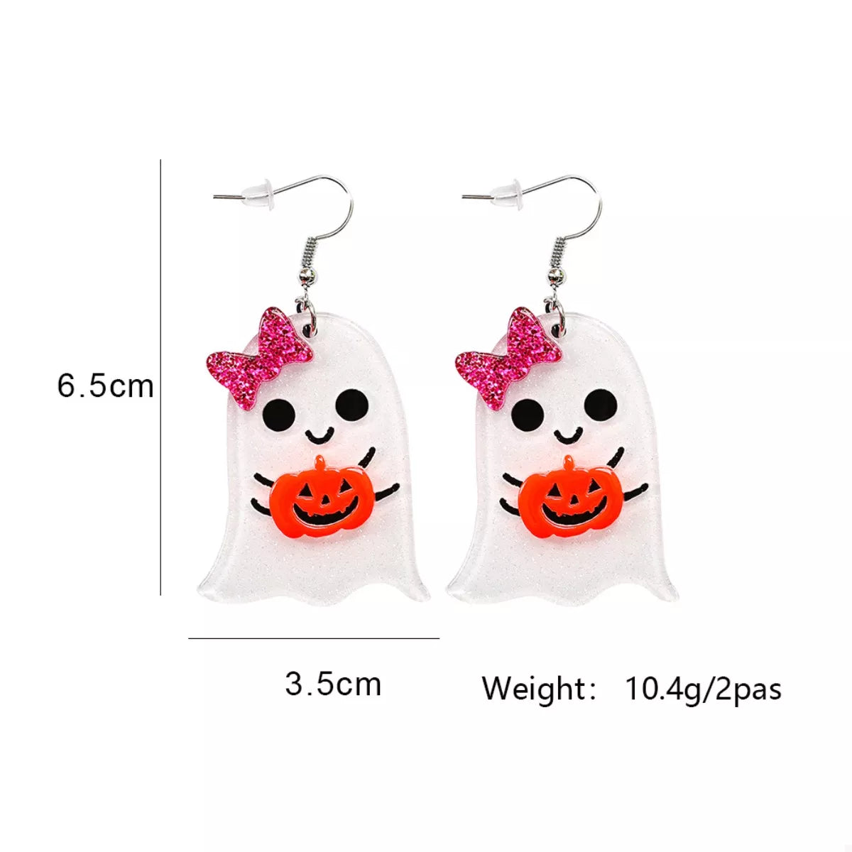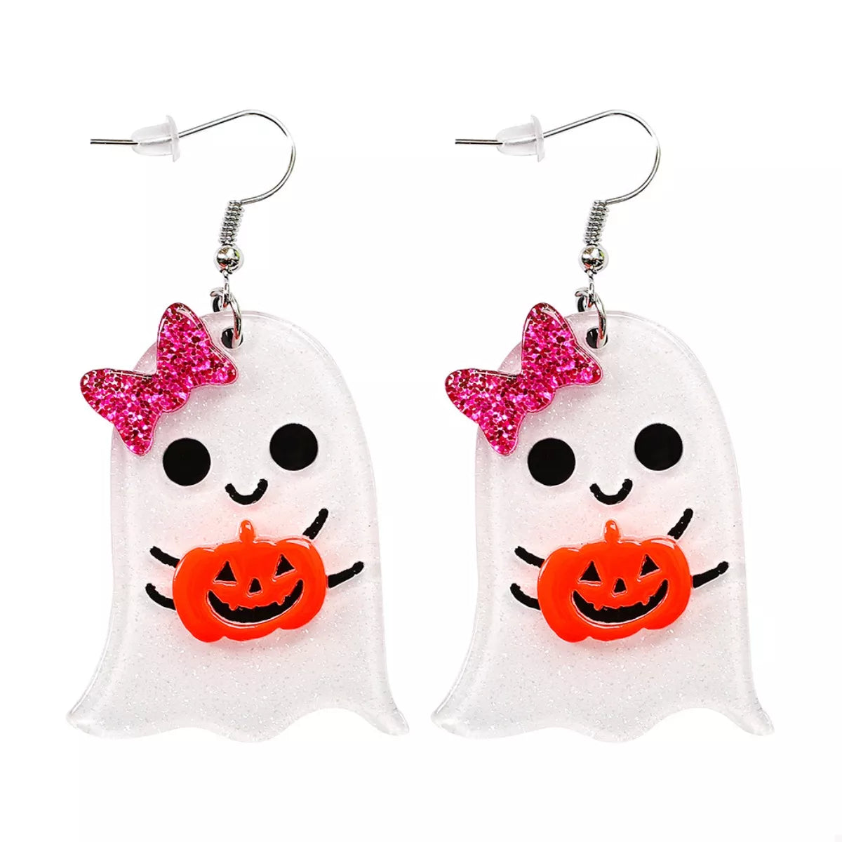Halloween Ghost Dangle Earrings with Bow and Pumpkin