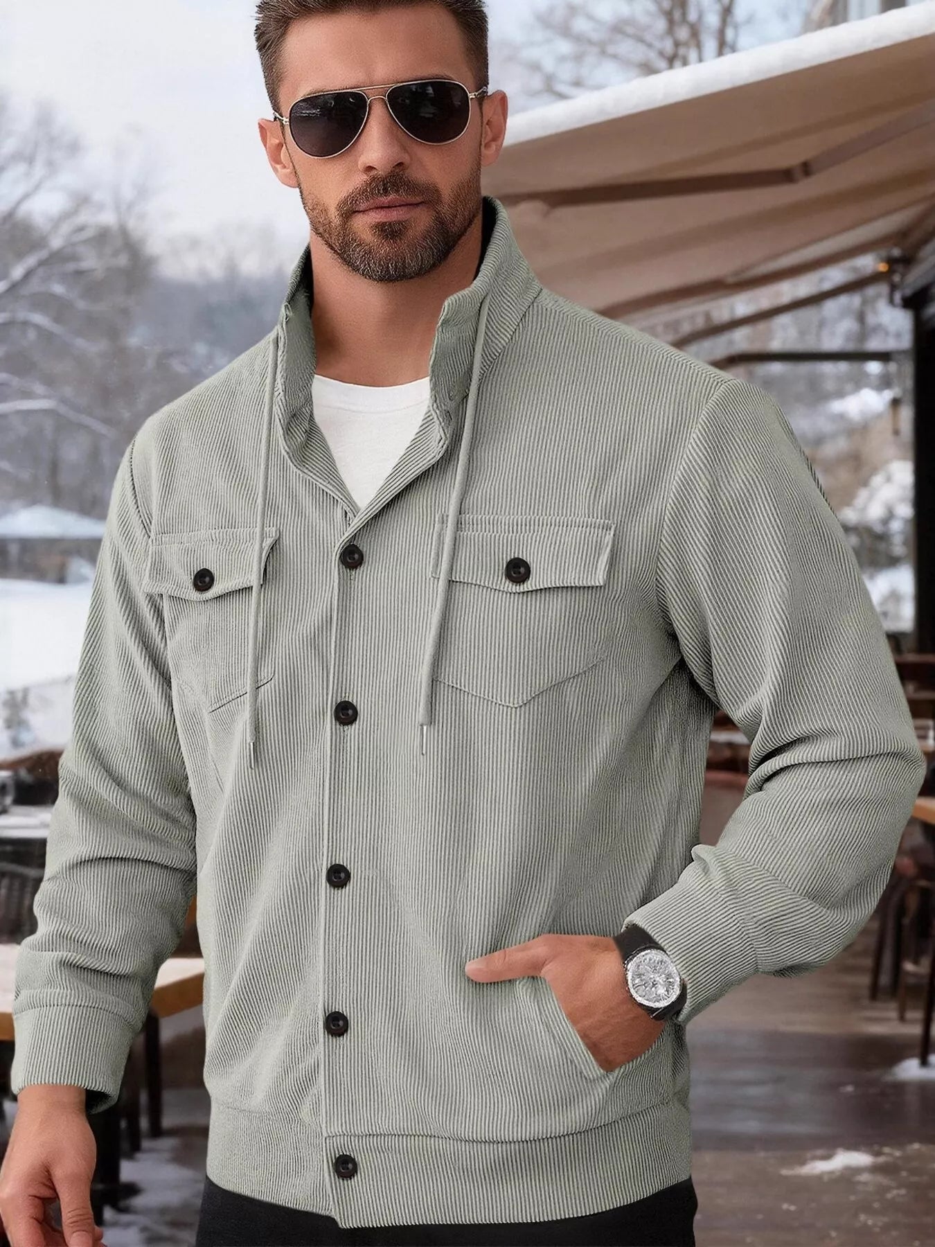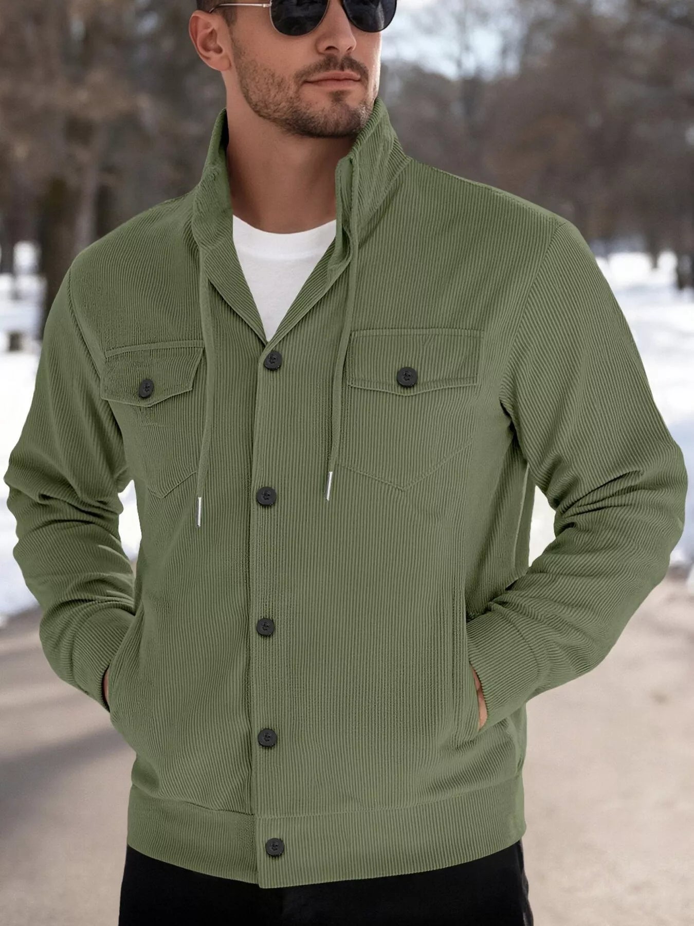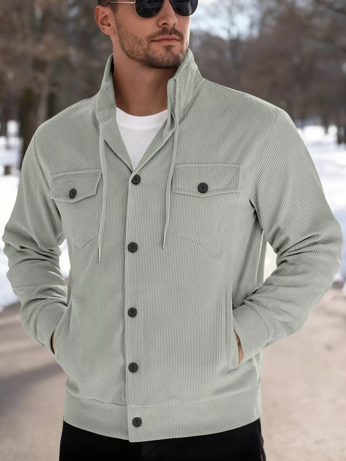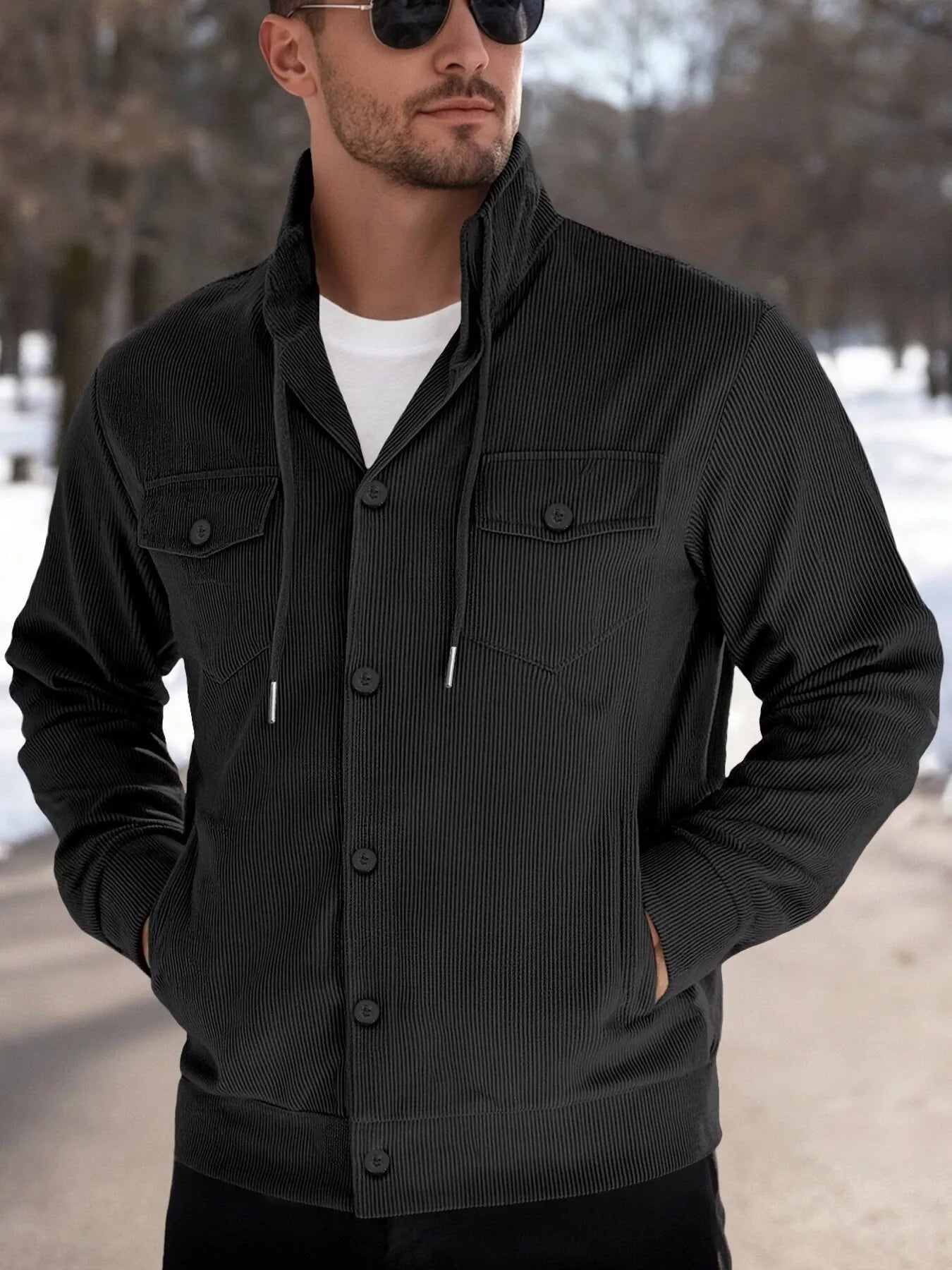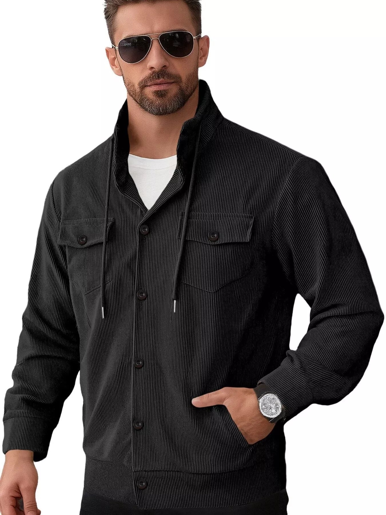 Men's Full Size Casual Corduroy Button-Down Jacket Plus Size