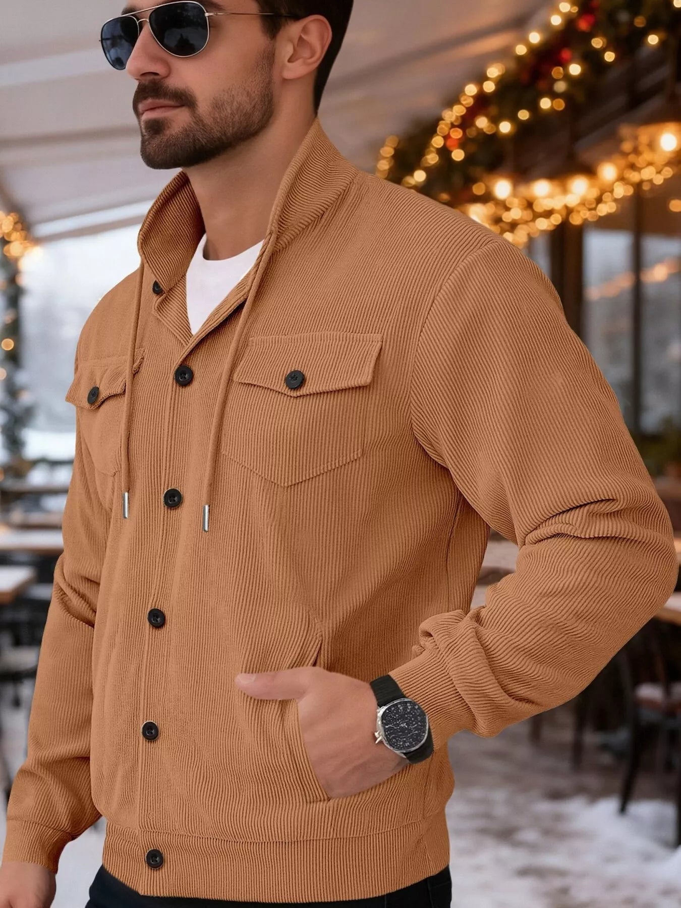 • Features:Basic style,Buttoned,Pocketed