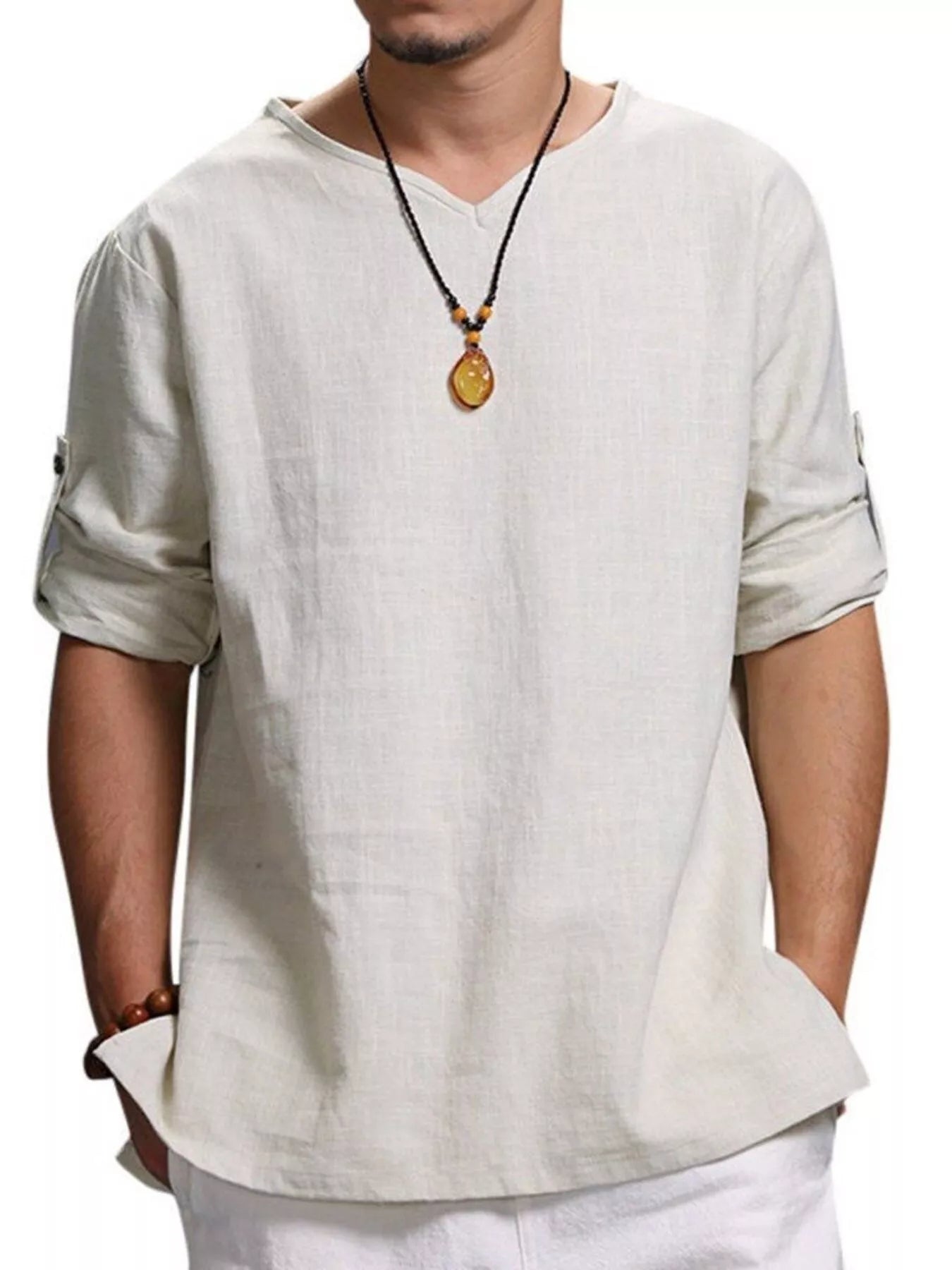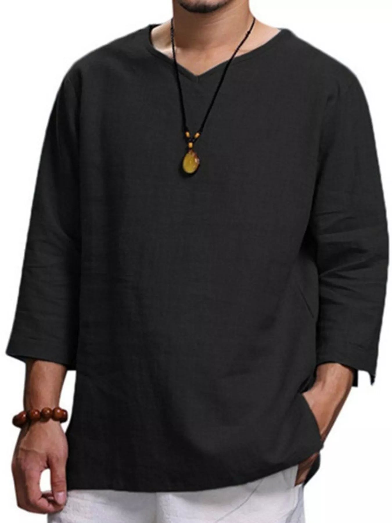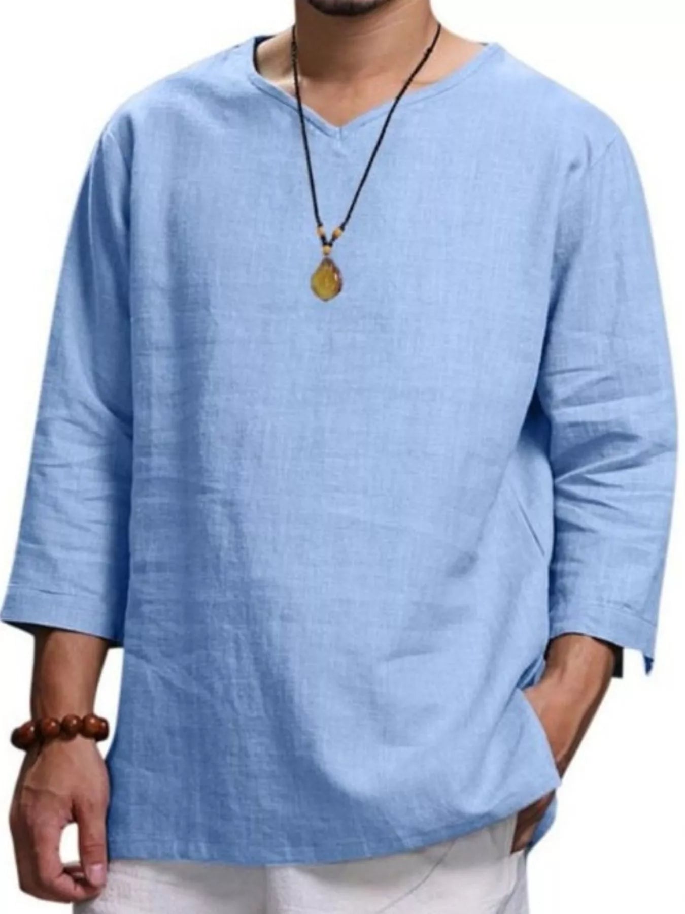 Men's Plus Size Casual Comfortable Fit 3/4 Sleeve Blouse