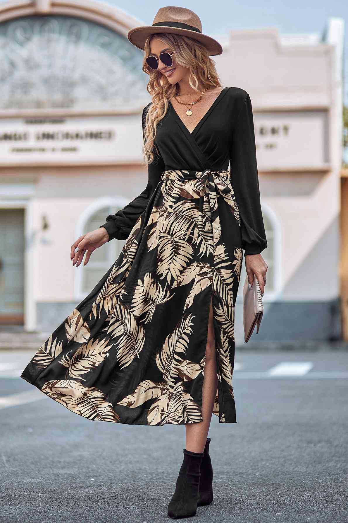 • Load image into Gallery viewer, Printed Tie Waist Long Sleeve Dress