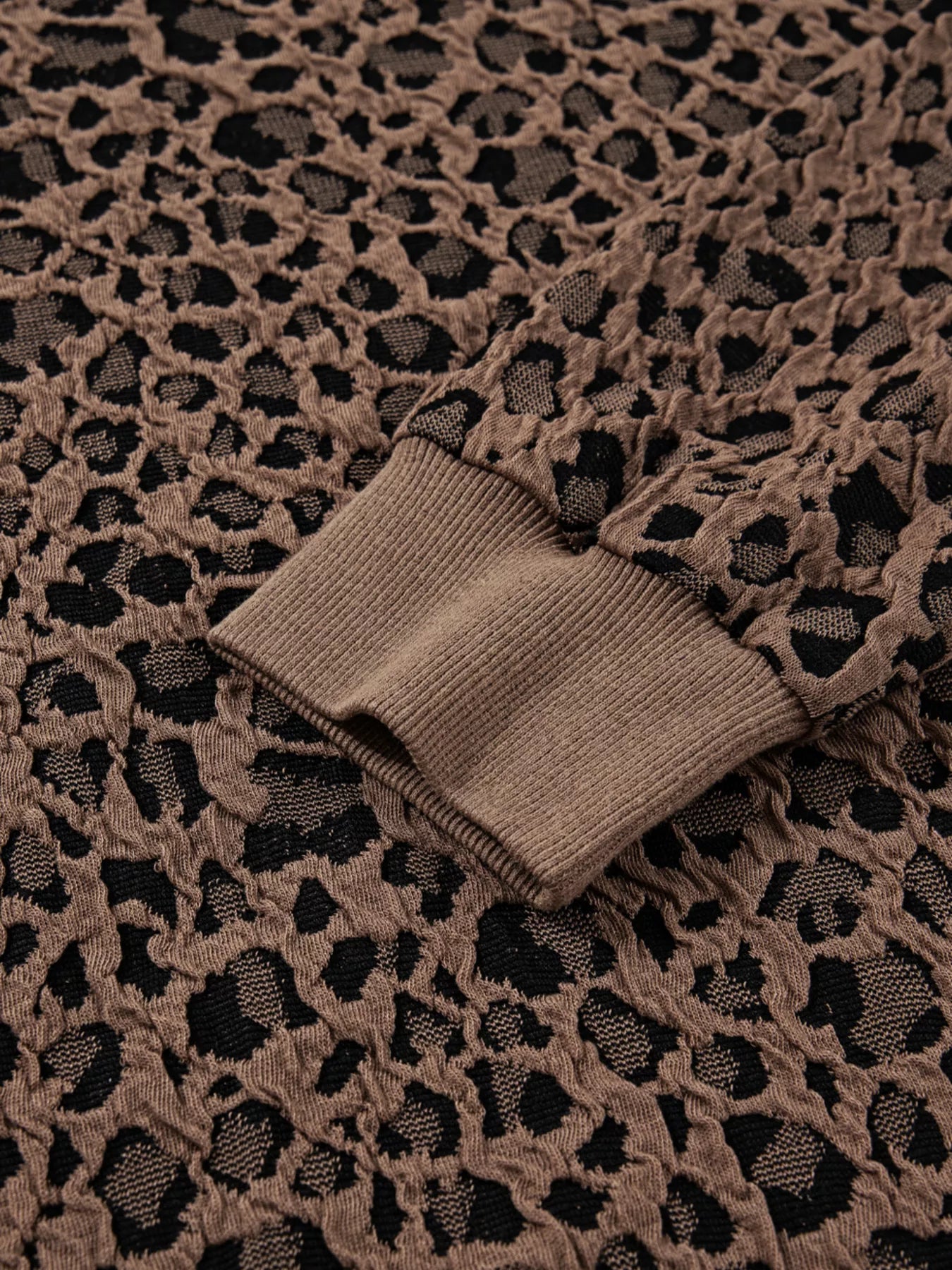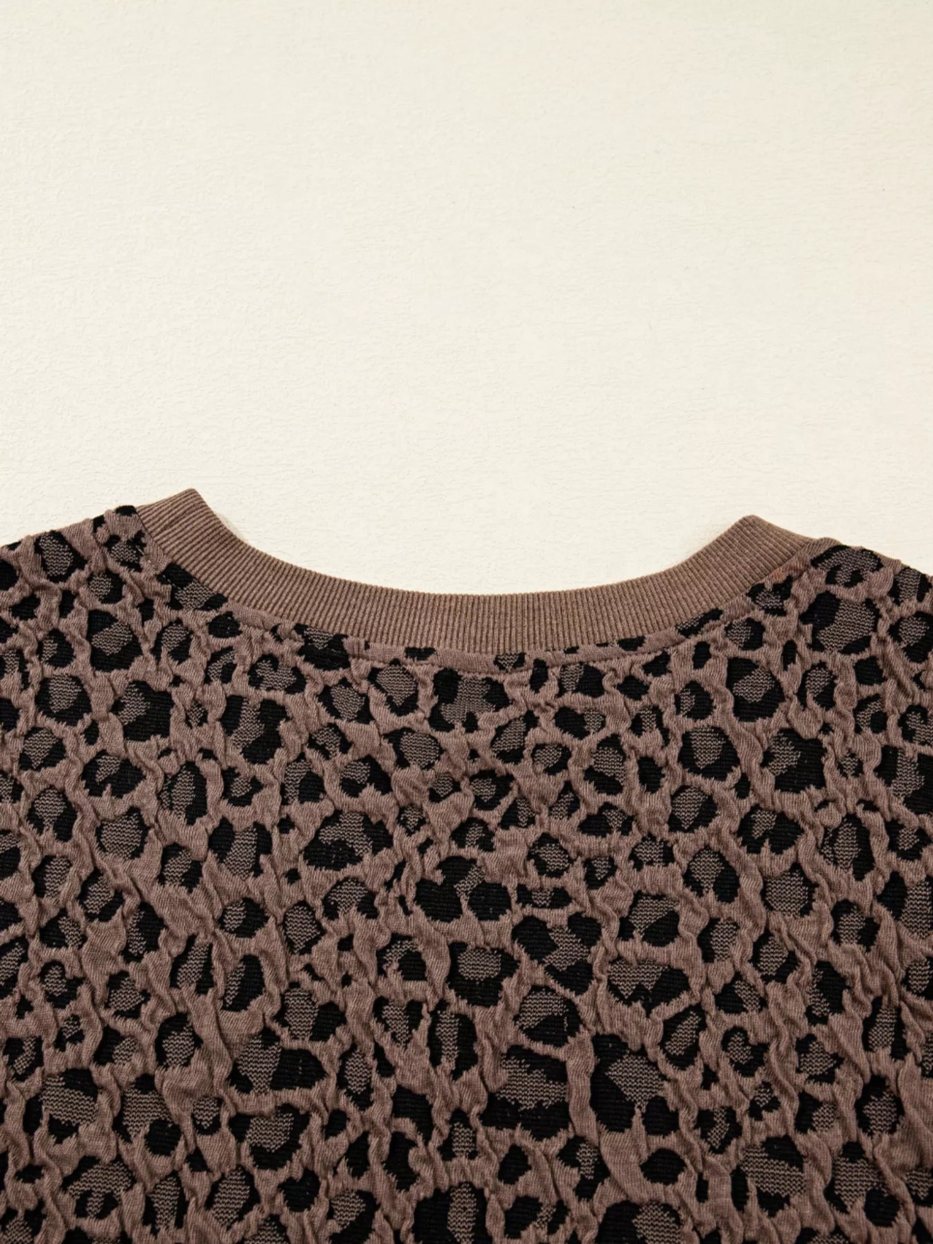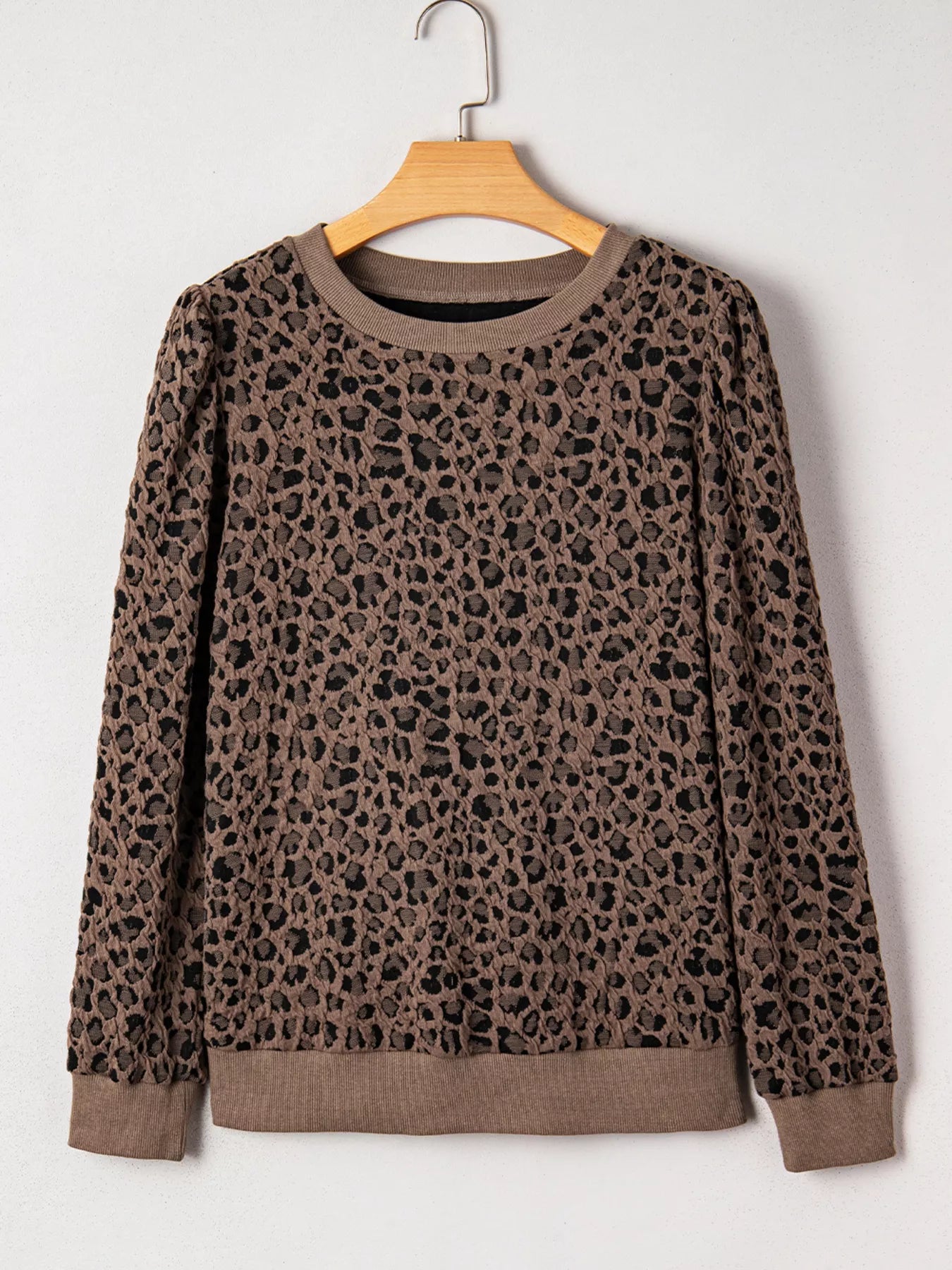 Ribbed Trim Leopard Print Long Sleeve Top