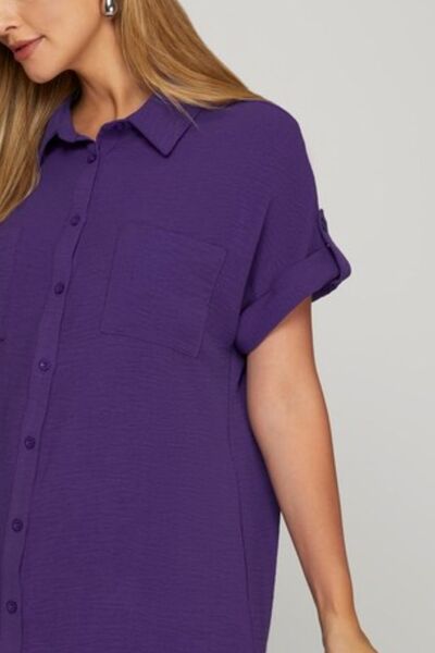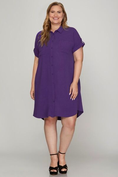 She + Sky Full Size Button Down Short Sleeve Woven Shirt Dress Plus Size