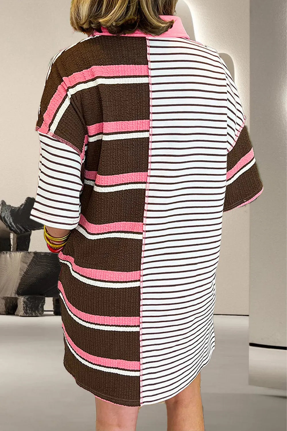 Striped Collared Neck Half Sleeve Mini Dress