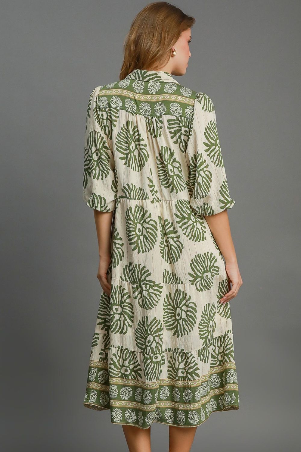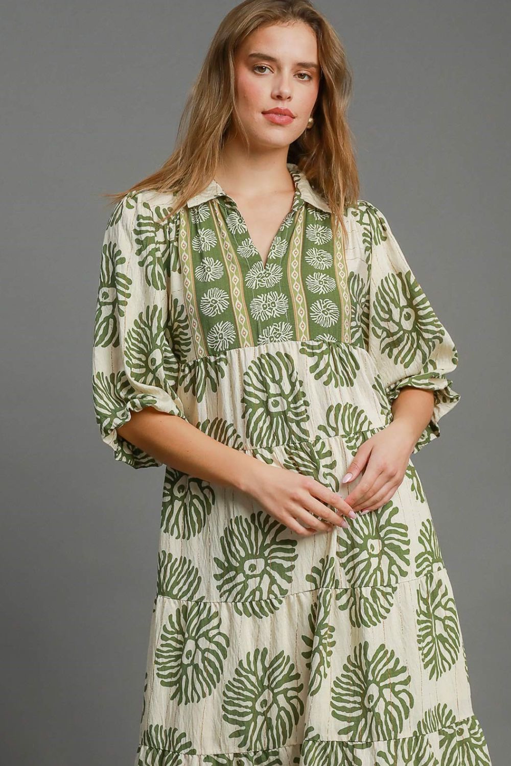 Umgee Full Size Border Print Tiered Midi Dress Plus Size
