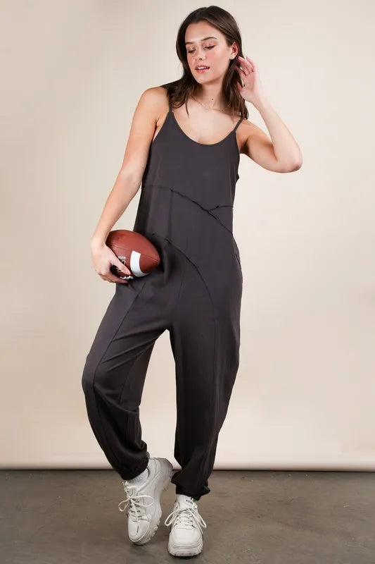 VERY J Sleeveless Knit Comfy Casual Jumpsuit