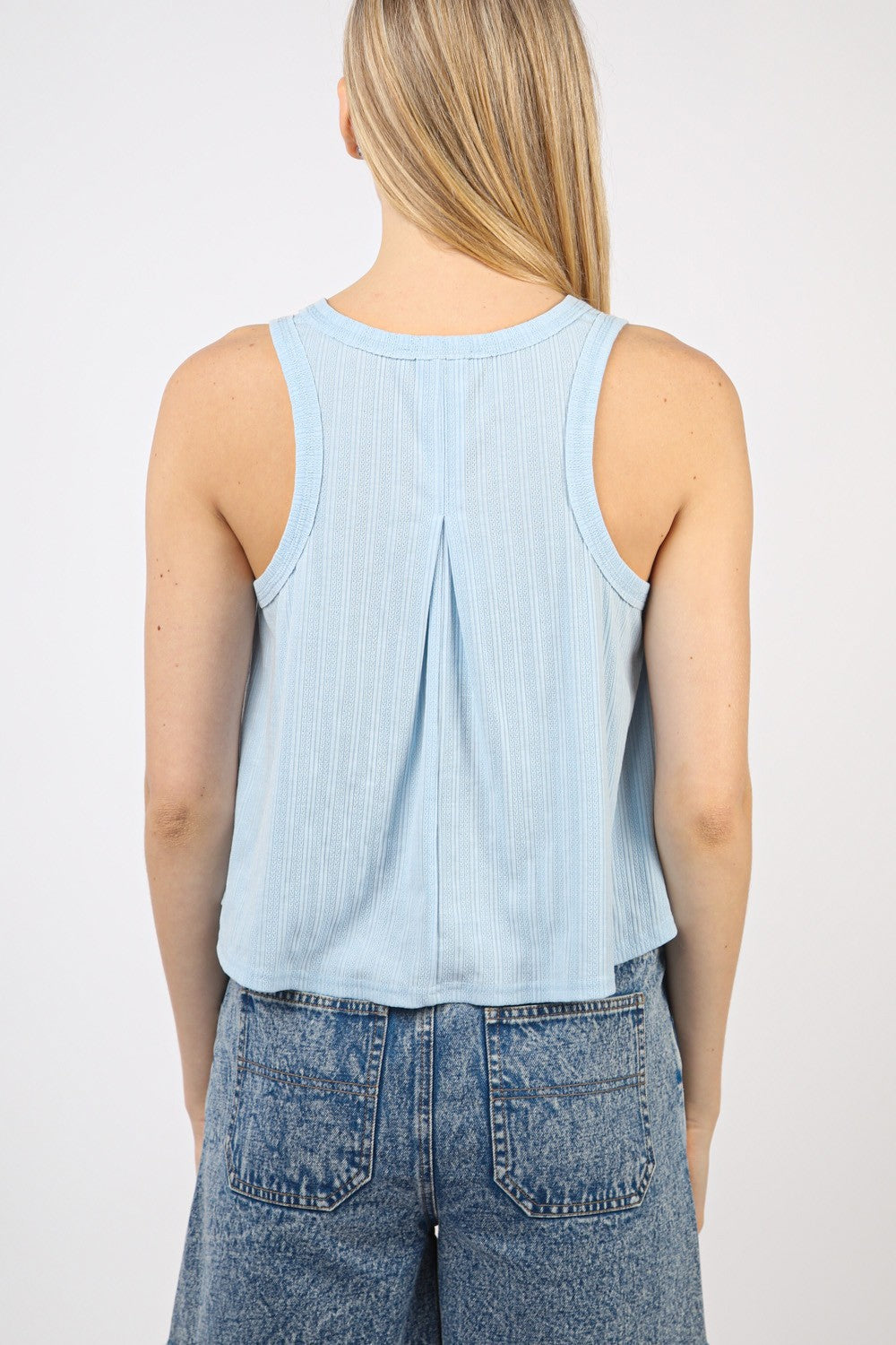 Look effortlessly chic in this Sleeveless Soft Knit Swing Crop Top featuring raw edge detail, designed to add a touch of casual charm to your outfit. This soft girlcore V-neck top is perfect for a dinner outing, offering a stylish and comfortable option for your evening plans. Its swing silhouette and soft knit fabric combine style and comfort seamlessly, ensuring you look and feel your best. Elevate your dinner look with this versatile and trend-forward crop top that exudes a laid-back yet feminine vibe.