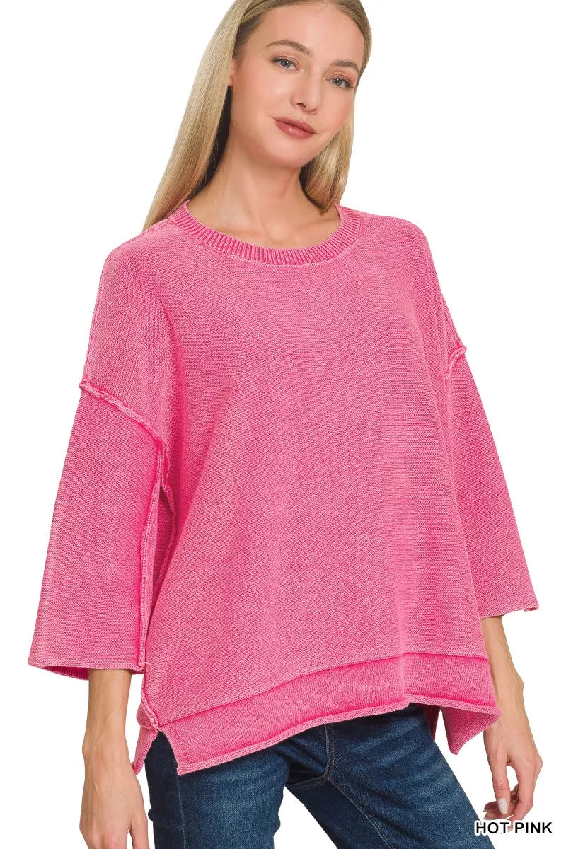 Zenana Washed 3/4 Sleeve Boxy Sweater